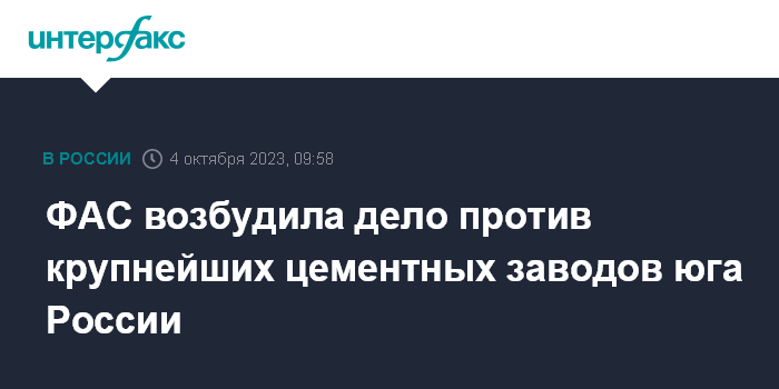 Ведомство сообщило, что возбудило дело по факту роста цен на цемент. По данным ФАС, цемент этих заводов в первом полугодии 2023 года дорожал быстрее, чем годом ранее.