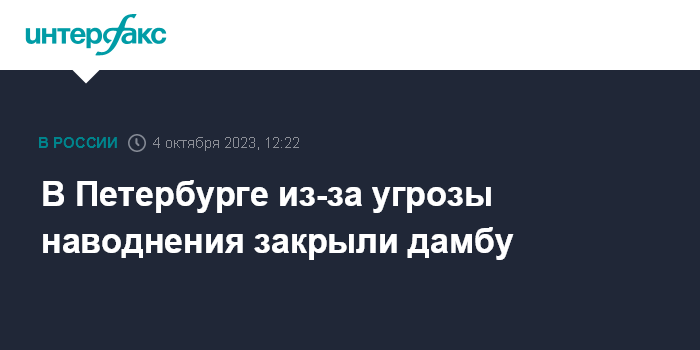 Москва. 4 октября. INTERFAX.RU - В Петербурге закрыли дамбу, чтобы предотвратить подъем уровня воды в устье Невы выше критических значений, сообщает телеграм-канал дирекции Комплекса защитных сооружений города от наводнения.