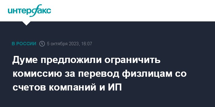 Думе предложили ограничить комиссию за перевод физлицам со счетов компаний и ИП
