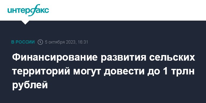 Финансирование развития сельских территорий могут довести до 1 трлн рублей
