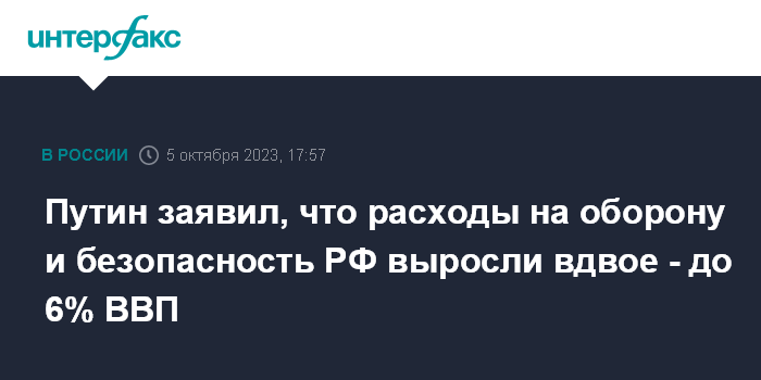 Путин заявил, что расходы на оборону и безопасность РФ выросли вдвое - до 6% ВВП