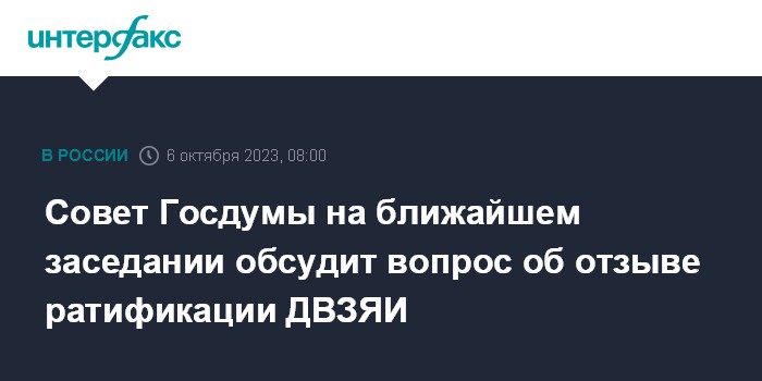 Совет Госдумы на ближайшем заседании обсудит вопрос об отзыве ратификации ДВЗЯИ