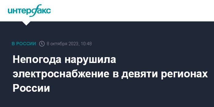 Москва. 8 октября. INTERFAX.RU - Дождь и сильный ветер нарушили электроснабжение в девяти российских субъектах, сообщила пресс-служба МЧС РФ.