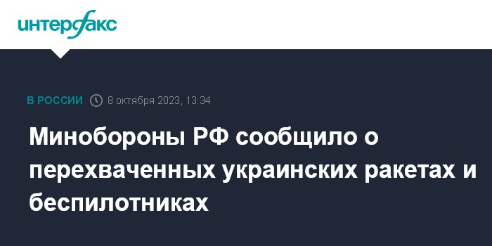 Минобороны РФ сообщило о перехваченных украинских ракетах и беспилотниках