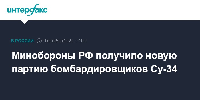 Минобороны РФ получило новую партию бомбардировщиков Су-34