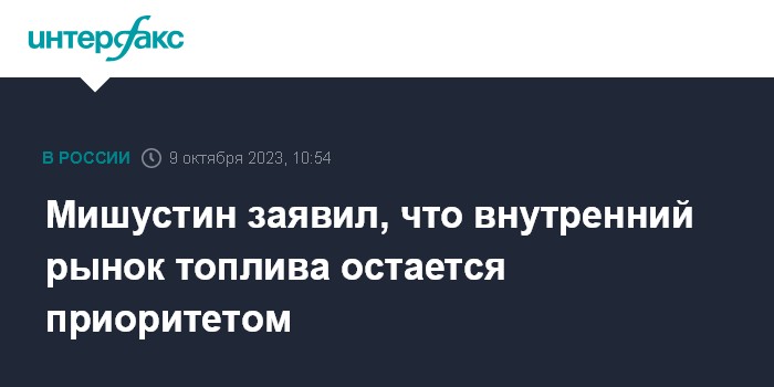 Мишустин заявил, что внутренний рынок топлива остается приоритетом