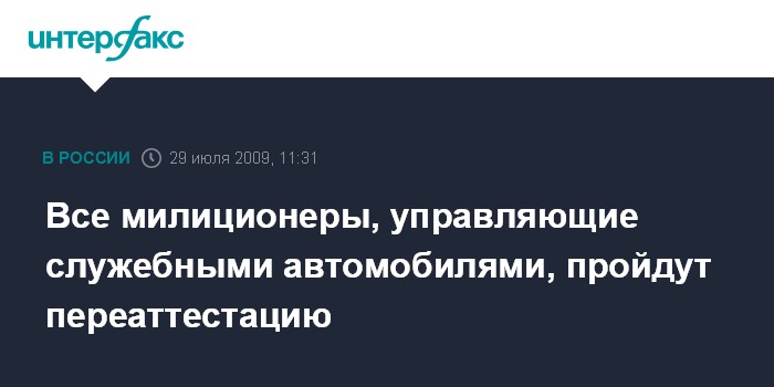 Москва. 29 июля. INTERFAX.RU - Министр внутренних дел Рашид Нургалиев приказал в течение месяца провести переаттестацию сотрудников милиции, управляющих служебными машинами, в связи с участившимися случаями совершения ими ДТП. По его словам, в течение месяца результаты переаттестации должны быть направлены в департамент ОБДД.