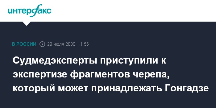Москва. 29 июля. INTERFAX.RU - Украинские судмедэксперты приступили к проведению экспертизы по идентификации фрагментов черепа, которые найдены в Белоцерковском районе Киевской области и могут принадлежать журналисту Георгию Гонгадзе.