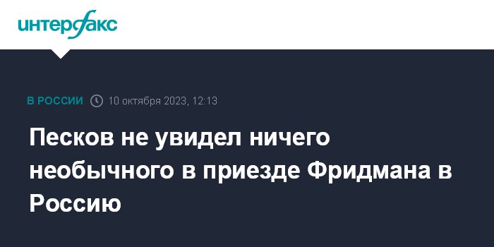 Песков не увидел ничего необычного в приезде Фридмана в Россию