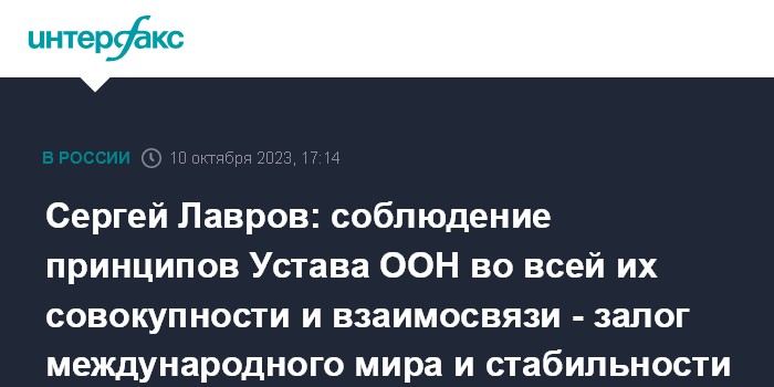 Сергей Лавров: соблюдение принципов Устава ООН во всей их совокупности и взаимосвязи - залог международного мира и стабильности