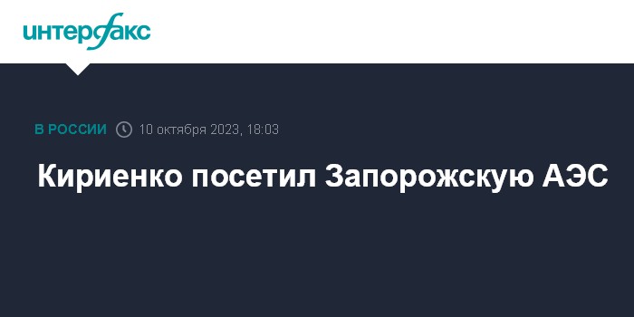 Москва. 10 октября. INTERFAX.RU - Первый заместитель руководителя администрации президента РФ Сергей Кириенко посетил Запорожскую АЭС (ЗАЭС) в Энергодаре, сообщается в телеграм-канале станции во вторник.