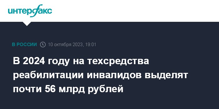 Москва. 10 октября. INTERFAX.RU - В 2024 году на финансирование программы "Доступная среда" будет выделено около 86,5 млрд рублей, из них 56 млрд рублей направят на технические средства реабилитации инвалидов, сообщила в Госдуме замминистра труда и социальной защиты Ольга Баталина.