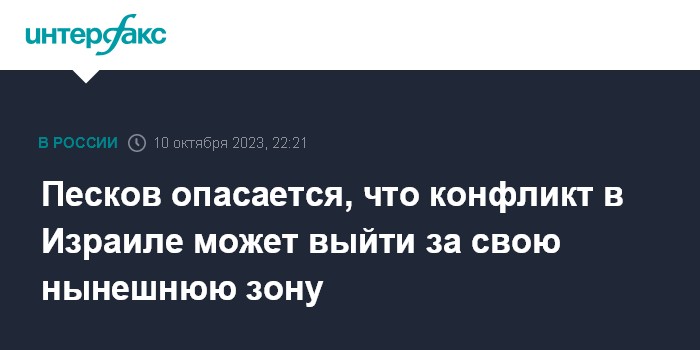Песков опасается, что конфликт в Израиле может выйти за свою нынешнюю зону