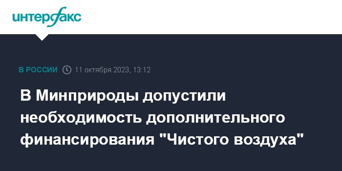 В Минприроды допустили необходимость дополнительного финансирования "Чистого воздуха"