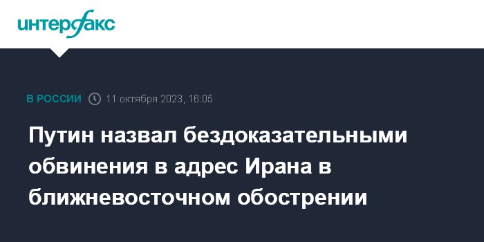 Путин назвал бездоказательными обвинения в адрес Ирана в ближневосточном обострении