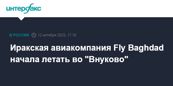 Москва. 12 октября. INTERFAX.RU - Частная иракская авиакомпания Fly Baghdad в четверг начала выполнять рейсы между Багдадом и московским "Внуково", сообщила пресс-служба аэропорта.