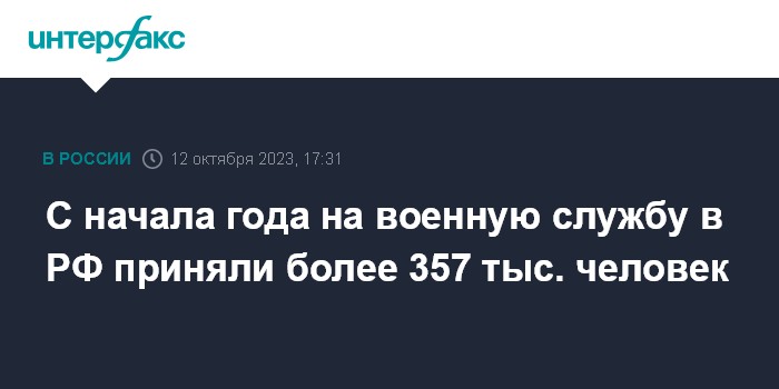С начала года на военную службу в РФ приняли более 357 тыс. человек