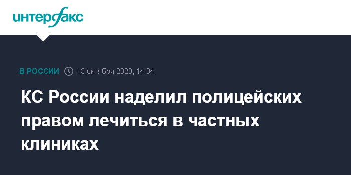 Москва. 13 октября. INTERFAX.RU - Конституционный суд защитил право полицейских при необходимости брать больничные в частных клиниках без риска быть уволенными за отсутствие на службе. Об этом говорится в постановлении на сайте КС.