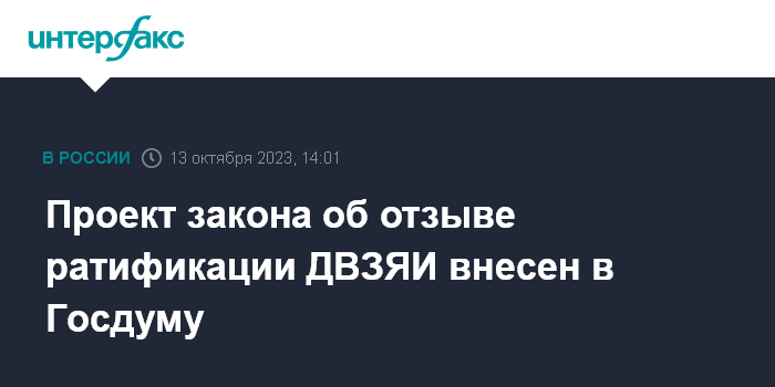 Проект закона об отзыве ратификации ДВЗЯИ внесен в Госдуму