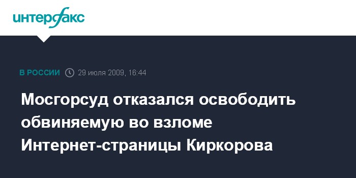 Мосгорсуд отказался освободить обвиняемую во взломе Интернет-страницы Киркорова