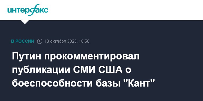 Москва. 13 октября. INTERFAX.RU - Президент Владимир Путин опроверг утверждение западных СМИ о том, что авиабаза "Кант" в Киргизии потеряла свою боеспособность из-за спецоперации на Украине.