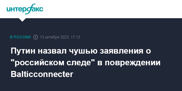 Путин назвал чушью заявления о "российском следе" в повреждении Balticconnecter