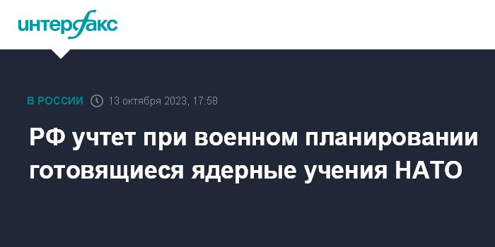 Москва. 13 октября. INTERFAX.RU - Москва учтет в своем военном планировании предстоящие учения НАТО по ядерному сдерживанию "Стойкий полдень", заявил в пятницу замглавы МИД РФ Сергей Рябков.