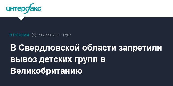 Москва. 29 июля. INTERFAX.RU - В Свердловской области 28 июля вышло предписание и.о. главного государственного санитарного врача по Свердловской области Владимира Гурвича, запрещающее вывоз организованных групп детей в Великобританию. Как говорится в документе, целью ограничений "являются предупреждение заноса и ограничение распространения случаев гриппа, вызванных новым подтипом".