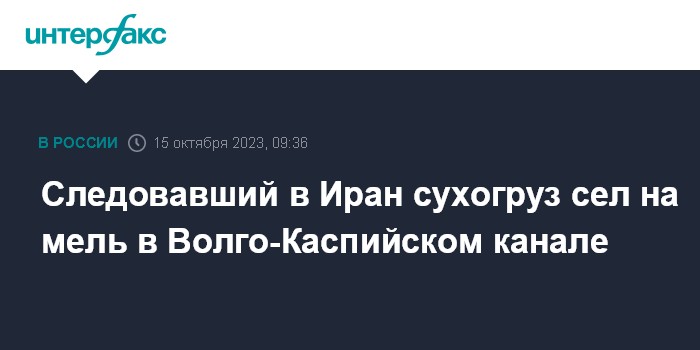 Москва. 15 октября. INTERFAX.RU - Сухогруз "Волго-Балт-232", следовавший в порт Каспиан (Иран), наскочил на мель на 146-м километре Волго-Каспийского морского судоходного канала, сообщает в воскресенье пресс-служба ГУ МЧС по Астраханской области.