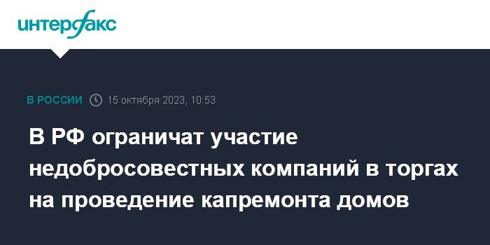 В РФ ограничат участие недобросовестных компаний в торгах на проведение капремонта домов