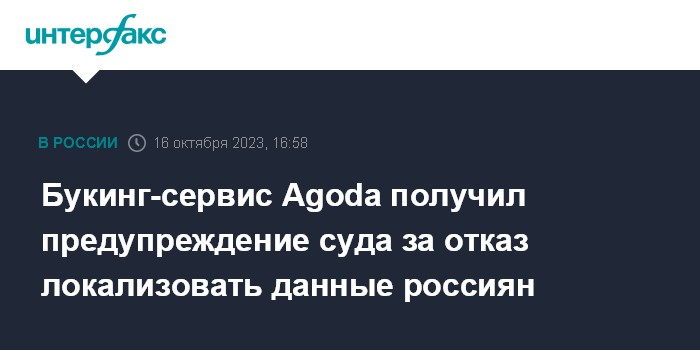 Букинг-сервис Agoda получил предупреждение суда за отказ локализовать данные россиян