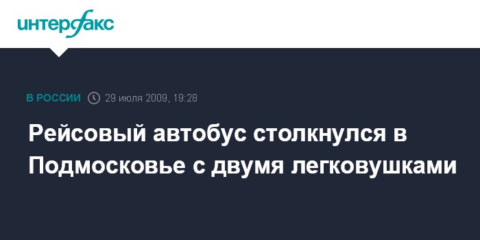 Москва. 29 июля. INTERFAX.RU - Рейсовый автобус столкнулся с двумя легковыми автомобилями "Нива" и "Волга" в подмосковном Красногорске, сообщил "Интерфаксу" в среду источник в правоохранительных органах.