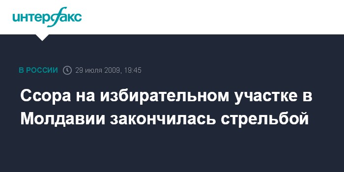 Как рассказали корреспонденту "Интерфакса" очевидцы, на избирательном участке возник скандал между представителями Партии коммунистов и оппозиционного Альянса "Наша Молдова". В ходе скандала представитель Партии коммунистов произвел выстрелы из пистолета и ранил в ногу Штефана Бумбу - сына руководителя местного филиала Альянса "Наша Молдова". Раненый госпитализирован.