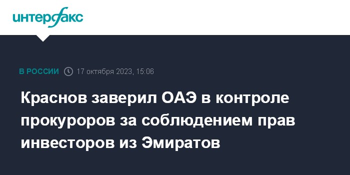 Краснов заверил ОАЭ в контроле прокуроров за соблюдением прав инвесторов из Эмиратов