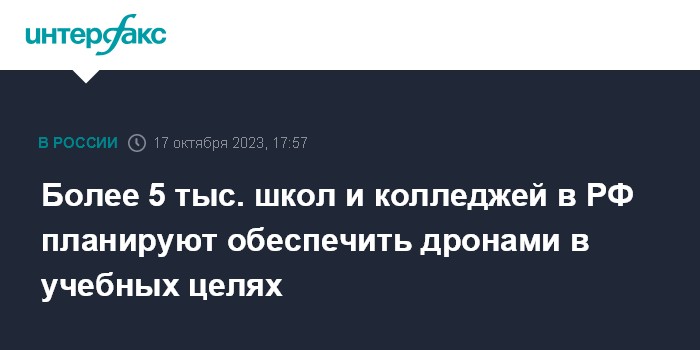 Москва. 17 октября. INTERFAX.RU - Минпросвещения РФ планирует поставить беспилотные летательные аппараты (БПЛА) в более чем 4,8 тыс. школ и 380 колледжей с 2024 по 2030 годы.