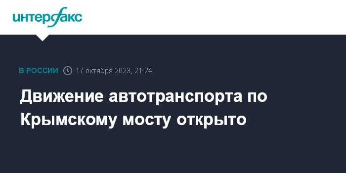 Москва. 17 октября. INTERFAX.RU - Крымский мост во вторник вечером открыт для проезда автотранспорта после остановки в движении примерно на 50 минут, сообщается в телеграм-канале с официальной информацией об обстановке на подъездах к мосту.