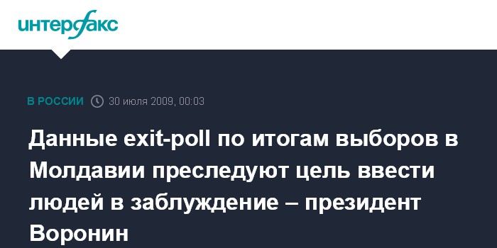 Данные exit-poll по итогам выборов в Молдавии преследуют цель ввести людей в заблуждение – президент Воронин