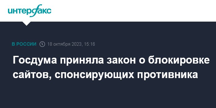 Госдума приняла закон о блокировке сайтов, спонсирующих противника