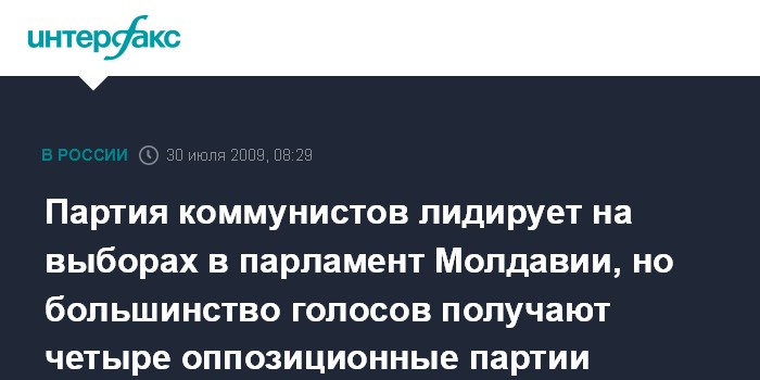Москва. 30 июля. INTERFAX.RU – Партия коммунистов лидирует на выборах в парламент Молдавии, но уступает четырем оппозиционным партиям в случае их объединения.