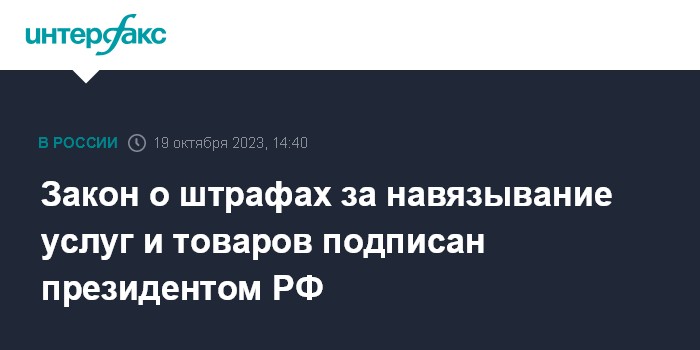 Закон о штрафах за навязывание услуг и товаров подписан президентом РФ