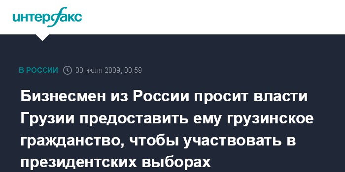 Бизнесмен из России просит власти Грузии предоставить ему грузинское гражданство, чтобы участвовать в президентских выборах