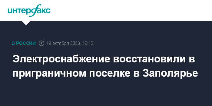 Электроснабжение восстановили в приграничном поселке в Заполярье