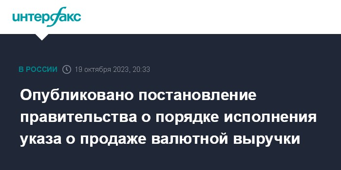 Как уже сообщалось, постановление обязывает перечисленных в указе экспортеров начиная с 16 октября в течение 60 дней с момента поступления средств зачислять на свои счета в российских банках не менее 80% всей иностранной валюты, полученной в соответствии с условиями их экспортных контрактов. Также они обязаны в течение двух недель продавать на внутреннем рынке не менее 90% валютной выручки, зачисленной на счета в российских банках (но не менее 50% от средств, полученных – независимо от того, в какой валюте – в соответствии с каждым экспортным контрактом, в срок не более 30 дней с момента их получения).