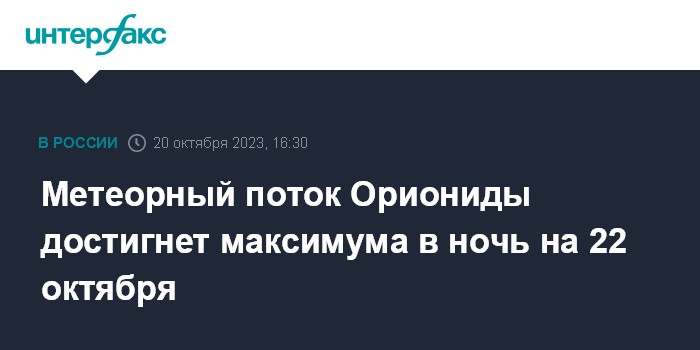 Москва. 20 октября. INTERFAX.RU - Условия наблюдения Орионид в октябре 2023 года являются благоприятными, свет Луны в ночь максимума не помешает наблюдениям метеоров, сообщает Московский планетарий.