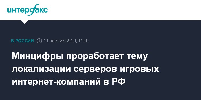 Минцифры проработает тему локализации серверов игровых интернет-компаний в РФ