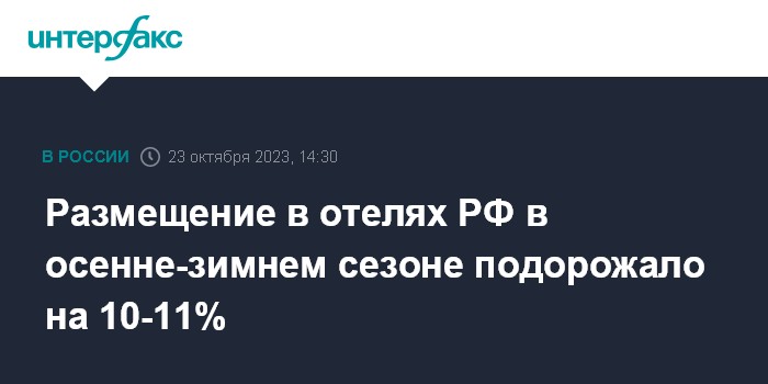 Размещение в отелях РФ в осенне-зимнем сезоне подорожало на 10-11%