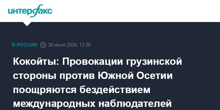 Кокойты: Провокации грузинской стороны против Южной Осетии поощряются бездействием международных наблюдателей