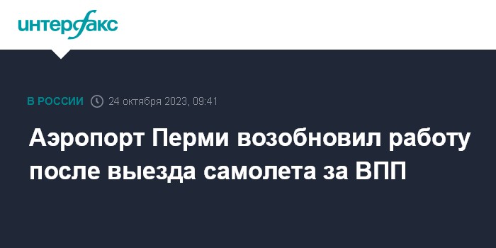 Москва. 24 октября. INTERFAX.RU - Пермский аэропорт "Большое Савино" возобновил прием и отправку рейсов, сообщила его пресс-служба. Предприятие прерывало работу утром после того, как прилетевший из Петербурга самолет выкатился за пределы взлетно-посадочной полосы.