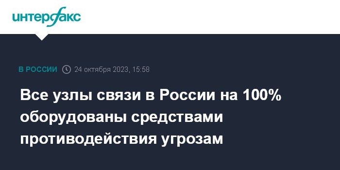 Все узлы связи в России на 100% оборудованы средствами противодействия угрозам
