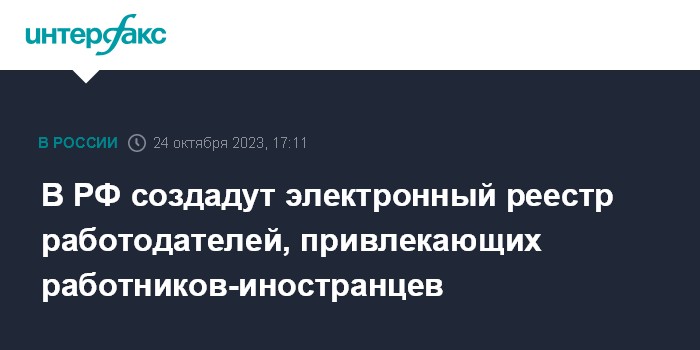 Москва. 24 октября. INTERFAX.RU - Правительство планирует создать электронные реестры работодателей и прибывающих в Россию работников-иностранцев, сообщает сайт кабинета министров России.